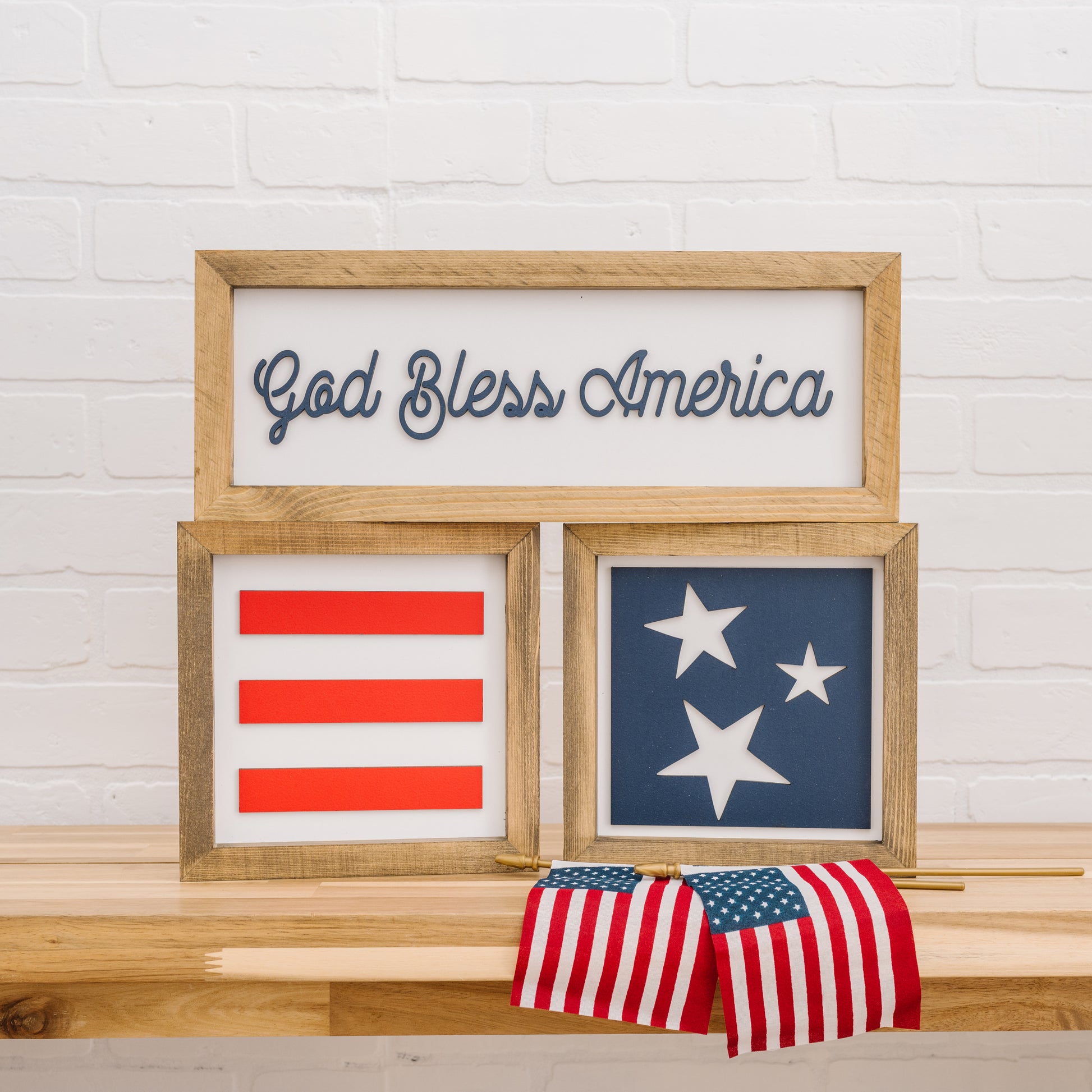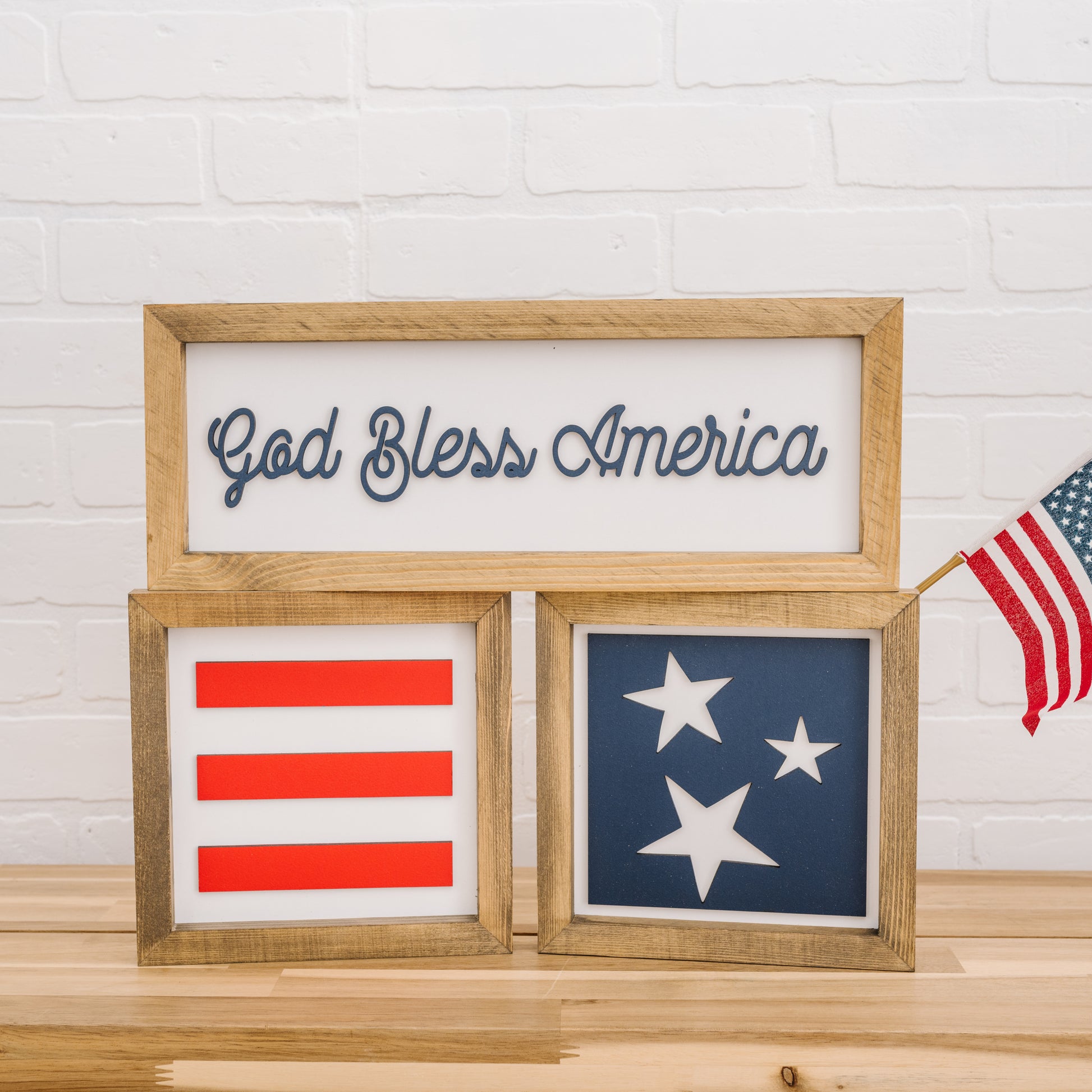 6x16 inch God Bless America + 8x8 inch Stars + 8x8 inch Stripes | Patriotic Signs
