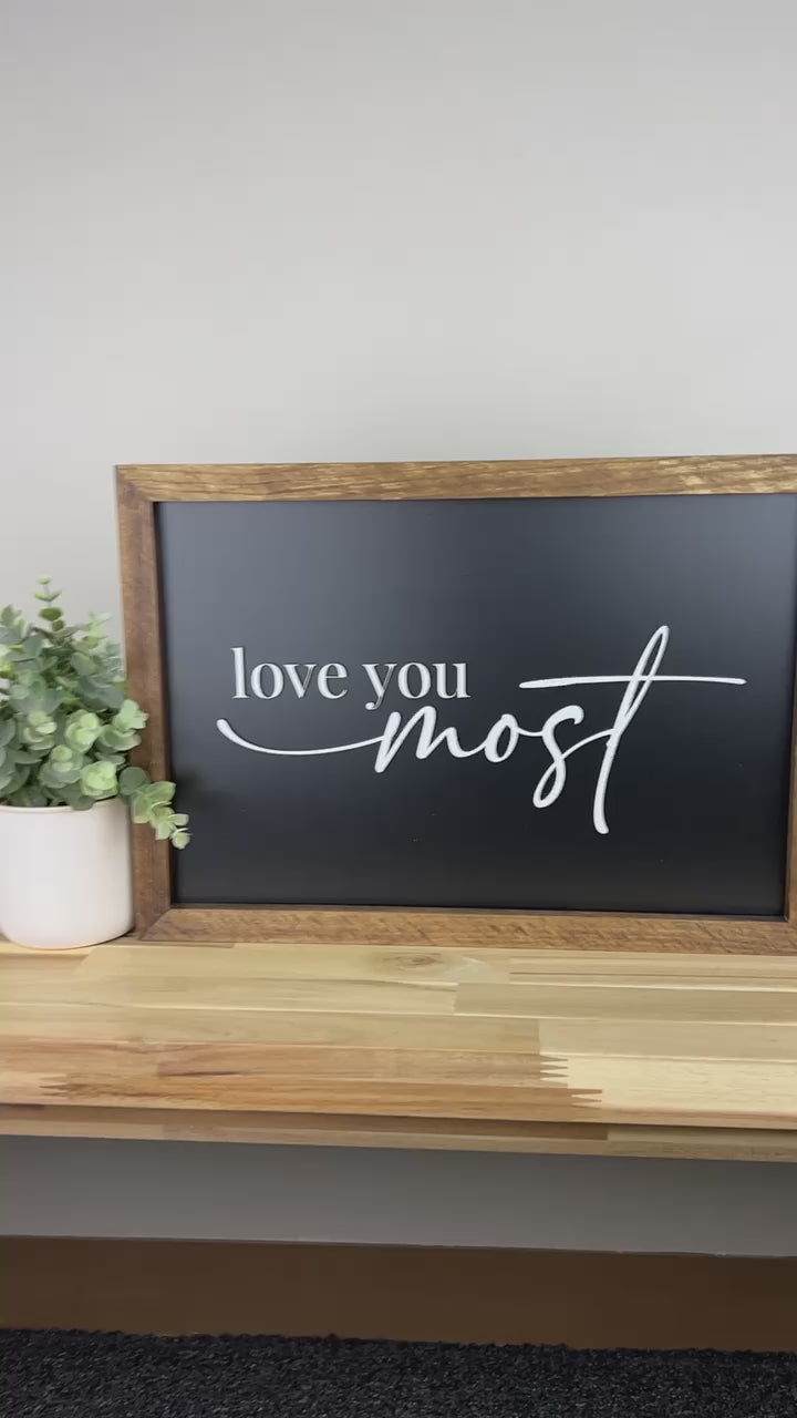 Black Love You Most | 11x16 inch Wood Framed Sign | 3D Lettering