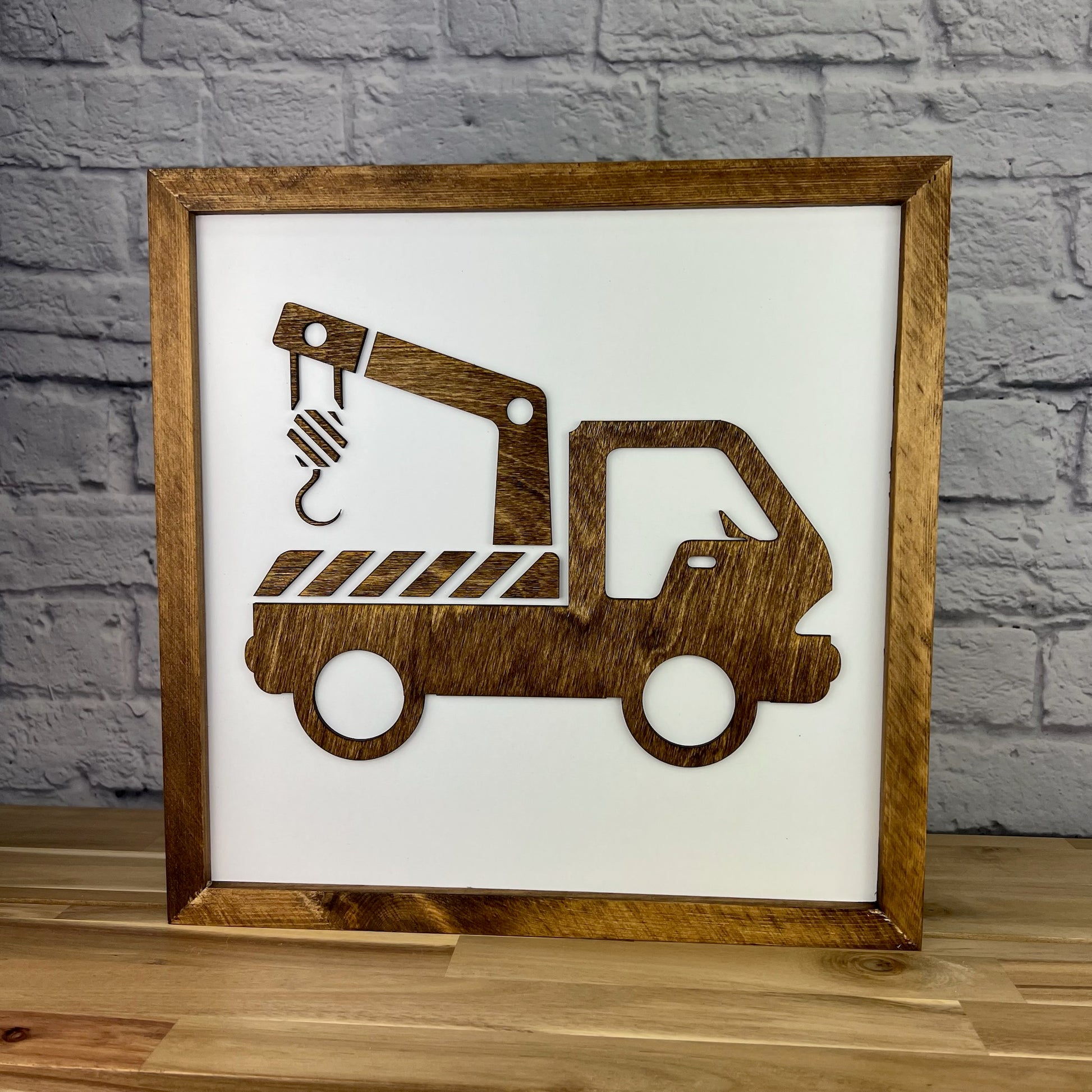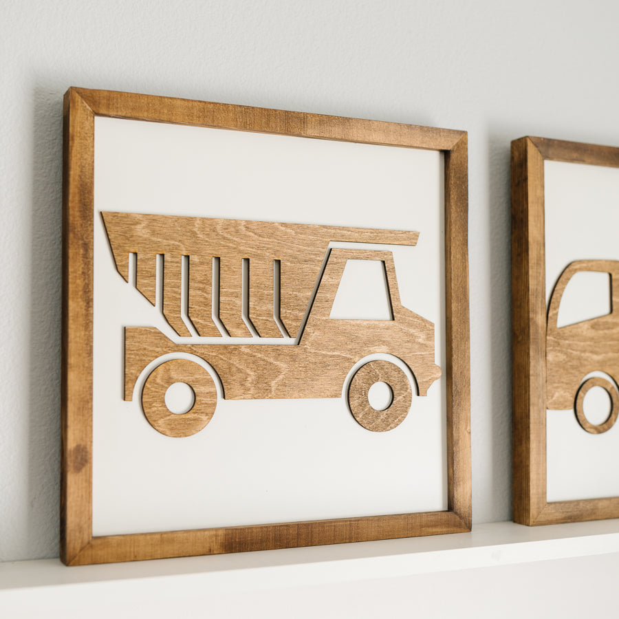 Construction Truck | 11x11 inch Wood Sign | Construction Room Decor
