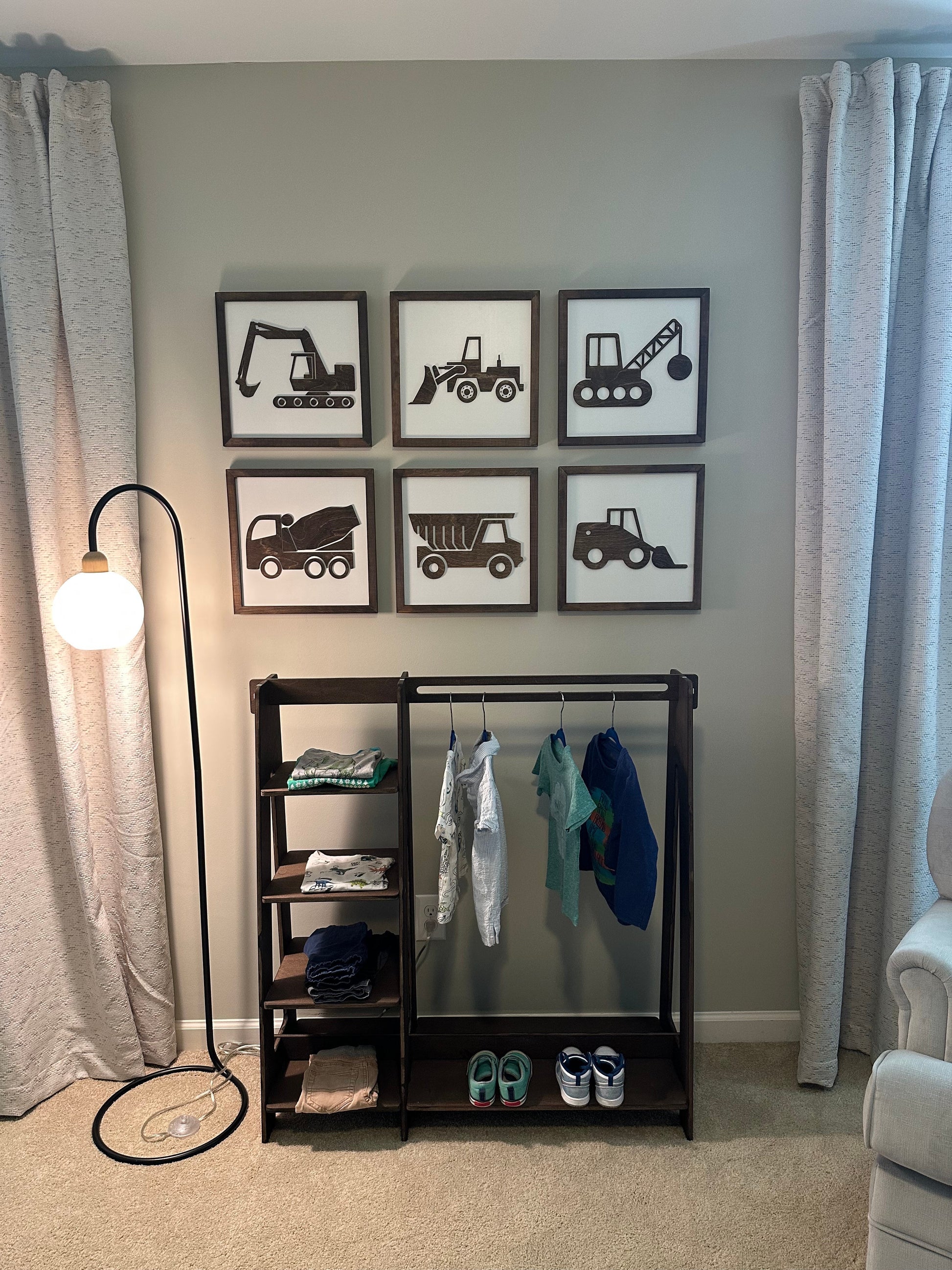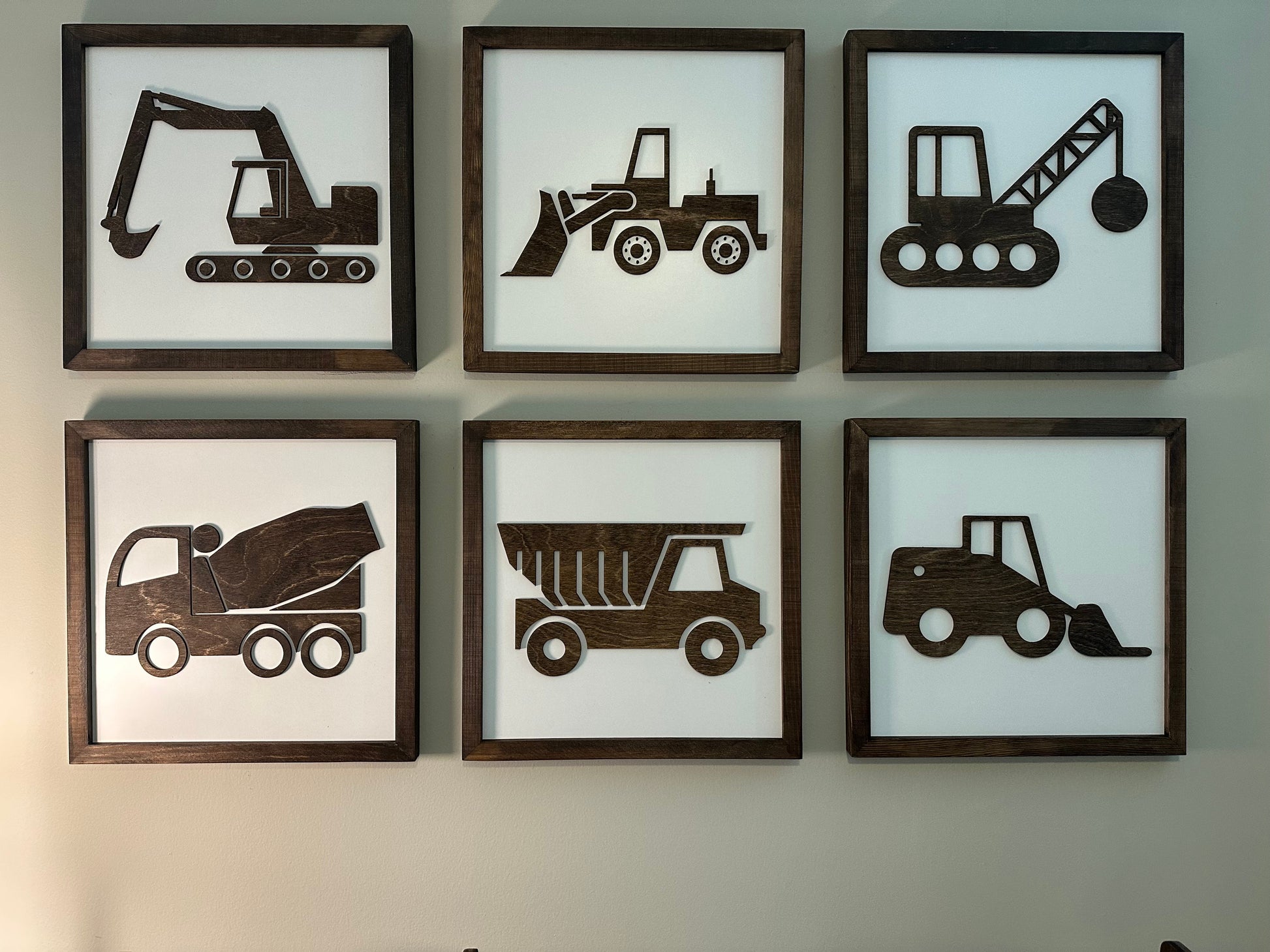 These construction truck signs are sold separately, but come together to make the perfect gallery wall for a boy's bedroom. We can't wait to see the construction truck room transformation you create with these signs.