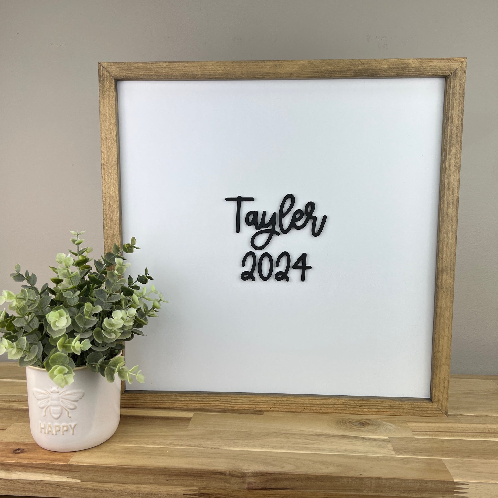 This sign makes the perfect gift for a graduate! How fun to have friends and family sign this personalized keepsake! You choose the name and we make it; you just have to provide the Sharpie everyone to sign it!