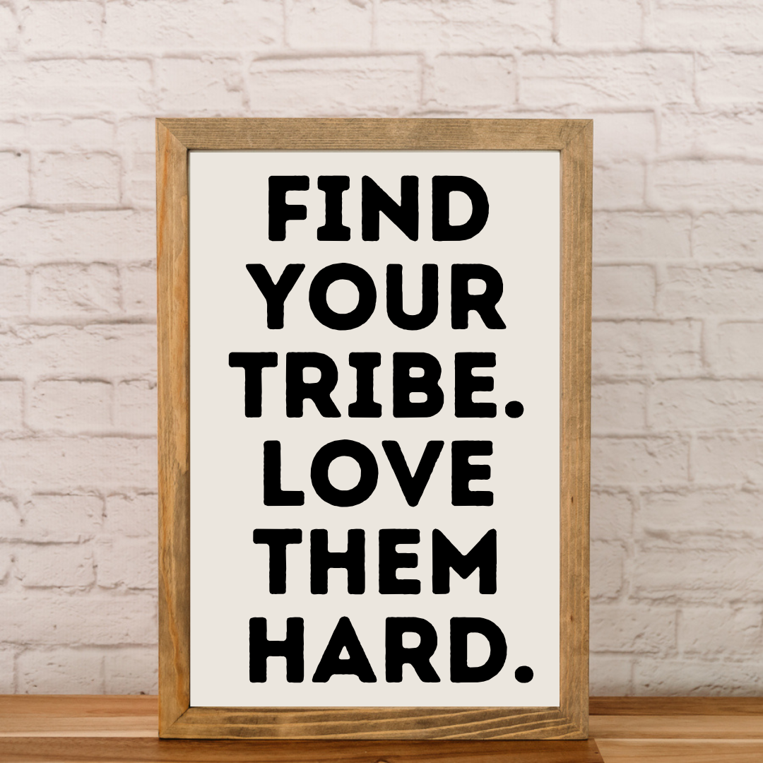 Find Your Tribe Love Them Hard | 11x16 inch Wood Framed Sign | White Background