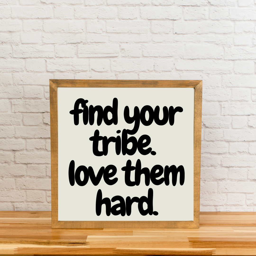Find Your Tribe Love Them Hard | Square Wood Framed Sign
