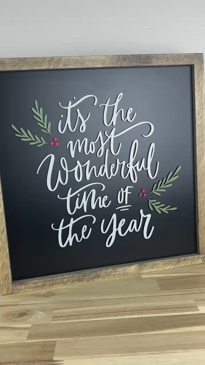 It’s the Most Wonderful Time of the Year Sign – Black, Red & Green Lettering – Wood Framed Christmas Decor