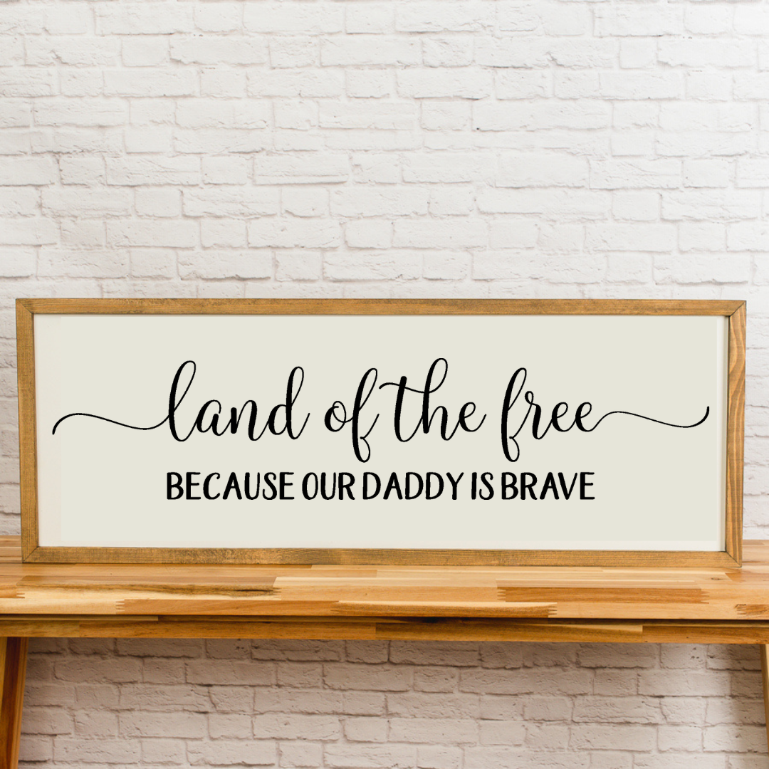 Land of the Free Because our Daddy is Brave | 13x35 inch Wood Sign