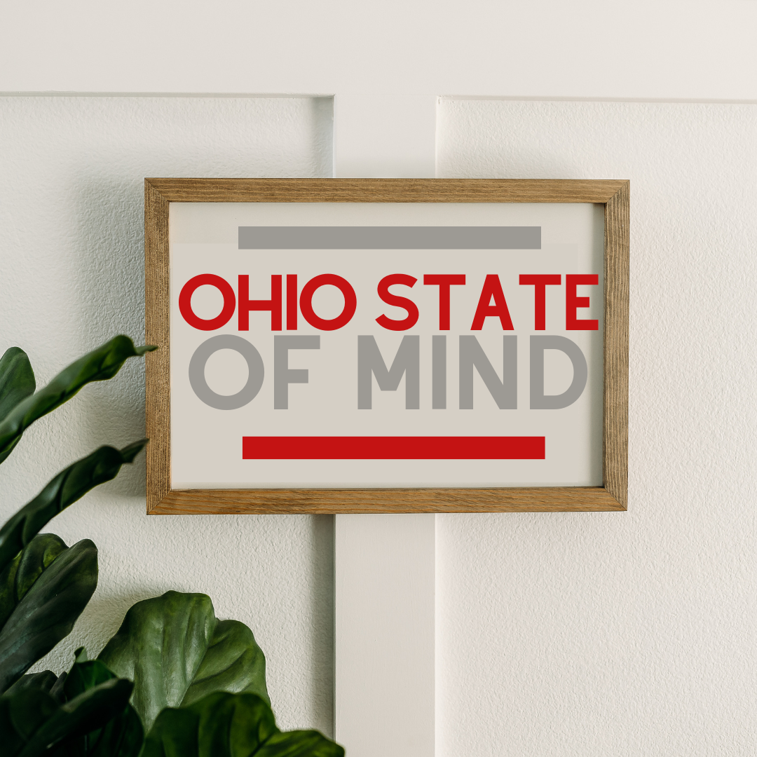 Ohio State of Mind with Lines | 11x16 inch Wood Sign