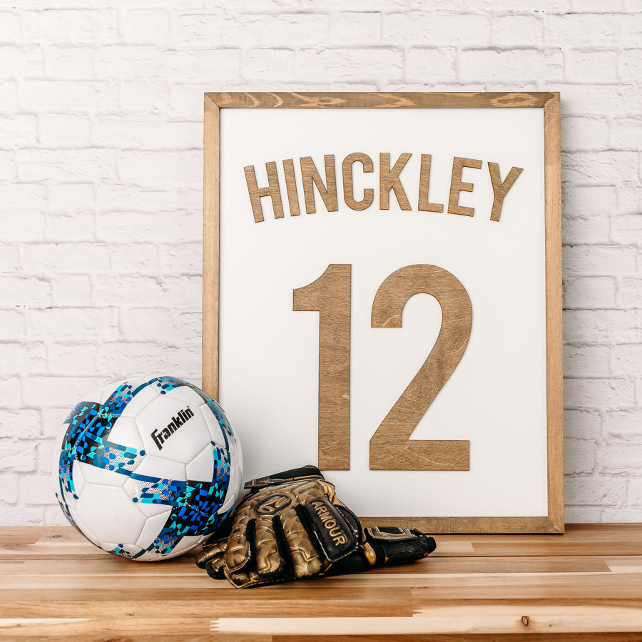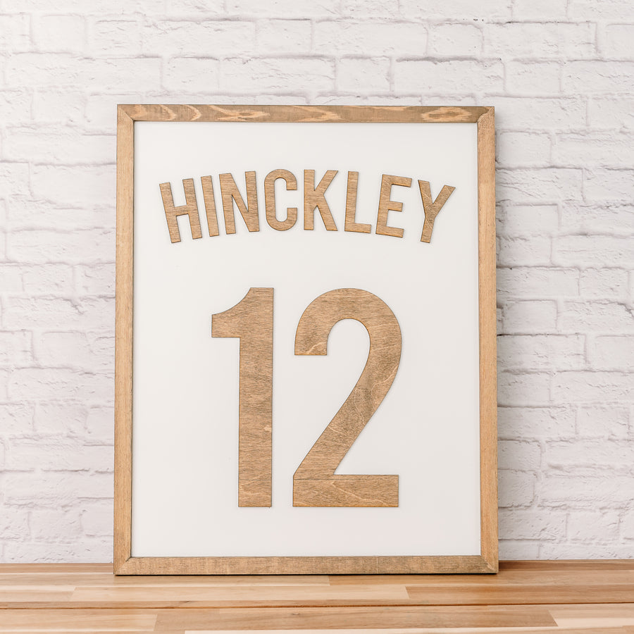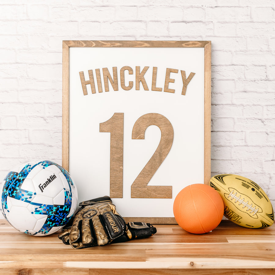 Personalized Basketball Jersey Sign | 17x21 inch Wood Sign | Neutral Sports Bedroom Decor | Sports Room Decor | Sports Room Wall Art