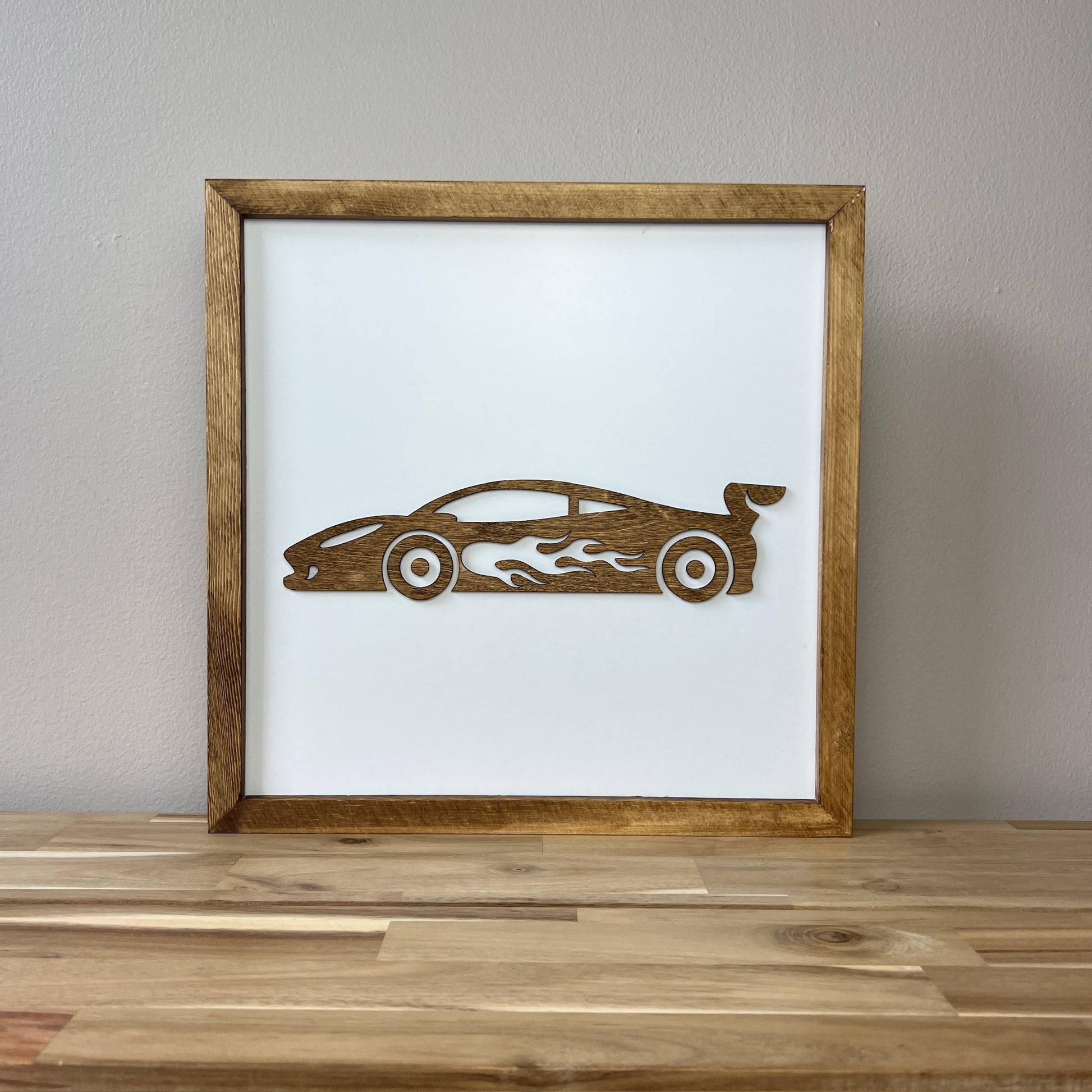 These race car signs are sold separately, but come together to make the perfect gallery wall for a boy's bedroom. We can't wait to see the room transformation you create with these signs.