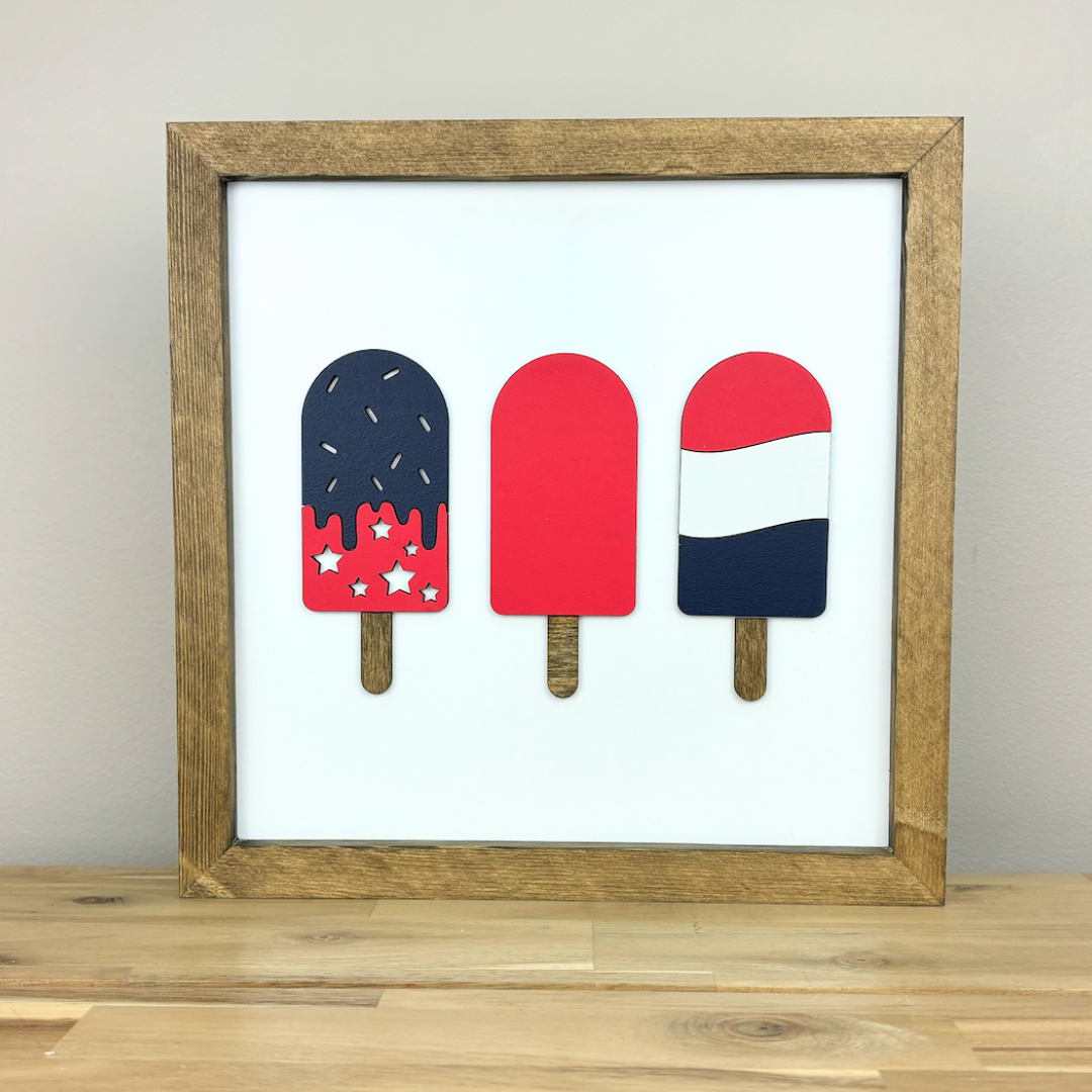 Red White & Blue Popsicles | 11x11 inch Wood Sign | Patriotic Sign
