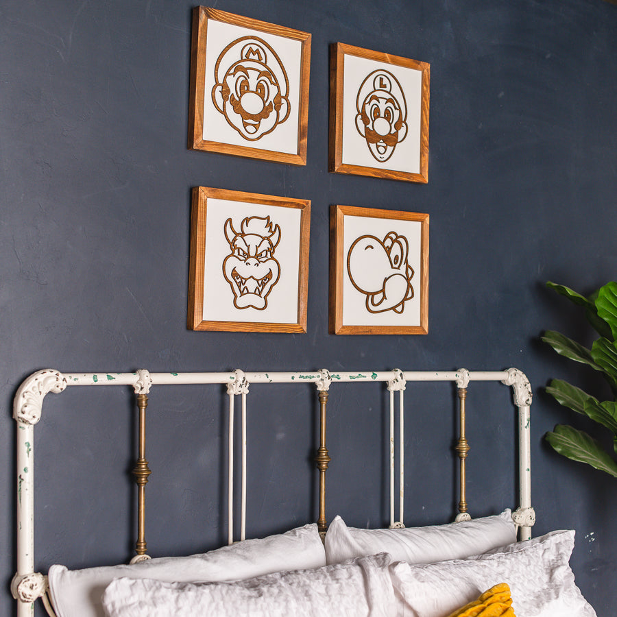 Such a fun part of childhood!  These Super Mario signs are made with walnut, dark walnut or weathered walnut stain (your choice!) and add such a fun neutral highlight to any decor!