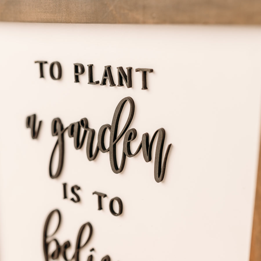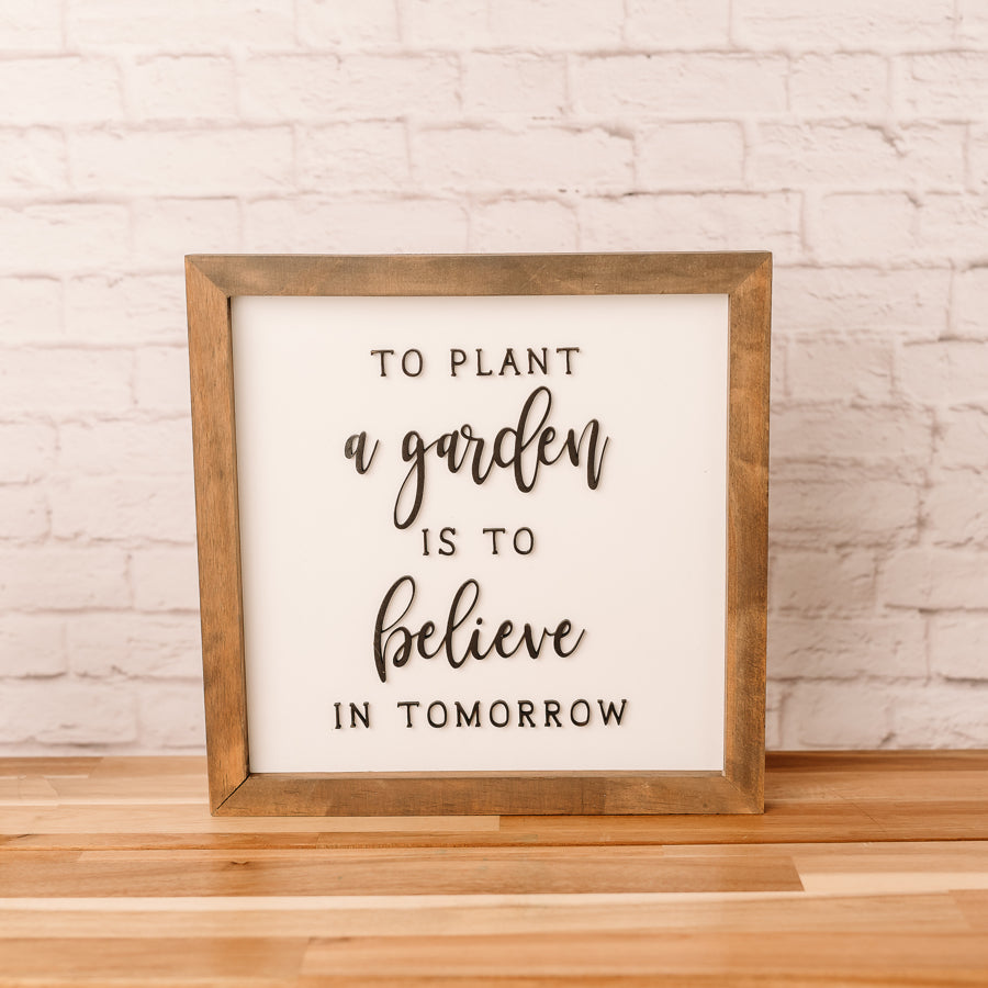 Do you, or a loved one, find joy in gardening. Just like this sign says, "To Plant a Garden is to Believe in Tomorrow"! Such a hope-filled sign! Makes the perfect gift for your gardening-loving friend.