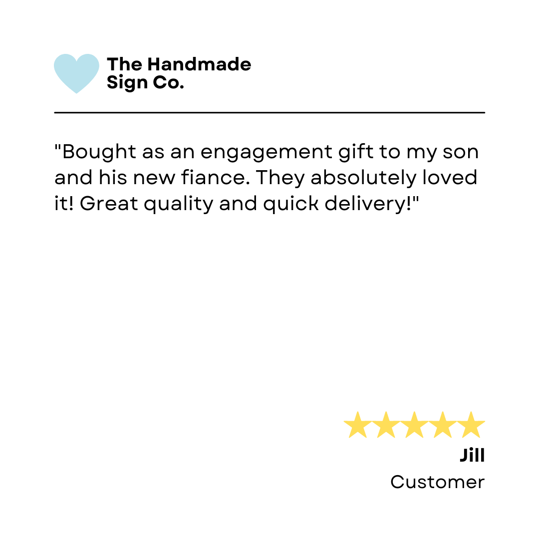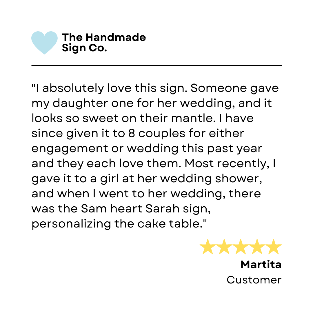 “I’ve purchased several signs from The Handmade Sign Co. over the years. They are always beautiful & excellent quality.